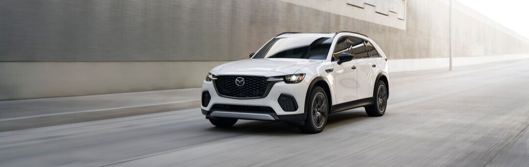 The Mazda CX-90 is the largest SUV in the Mazda lineup. With a wheelbase measuring more than 122 inches in the newest version, the Mazda CX-90 is the definition of roomy. Three seating rows provide plenty of space, and the top trims of the new Mazda CX-90 include leather upholstery and heated front seats. A robust tech package with a large infotainment screen is common in the newest versions, too. The top engine option delivers 340 horsepower and can tow 5,000 pounds. Mazda also builds a plug-in hybrid variant of the Mazda CX-90 that achieves 56 MPGe in electric-only driving.